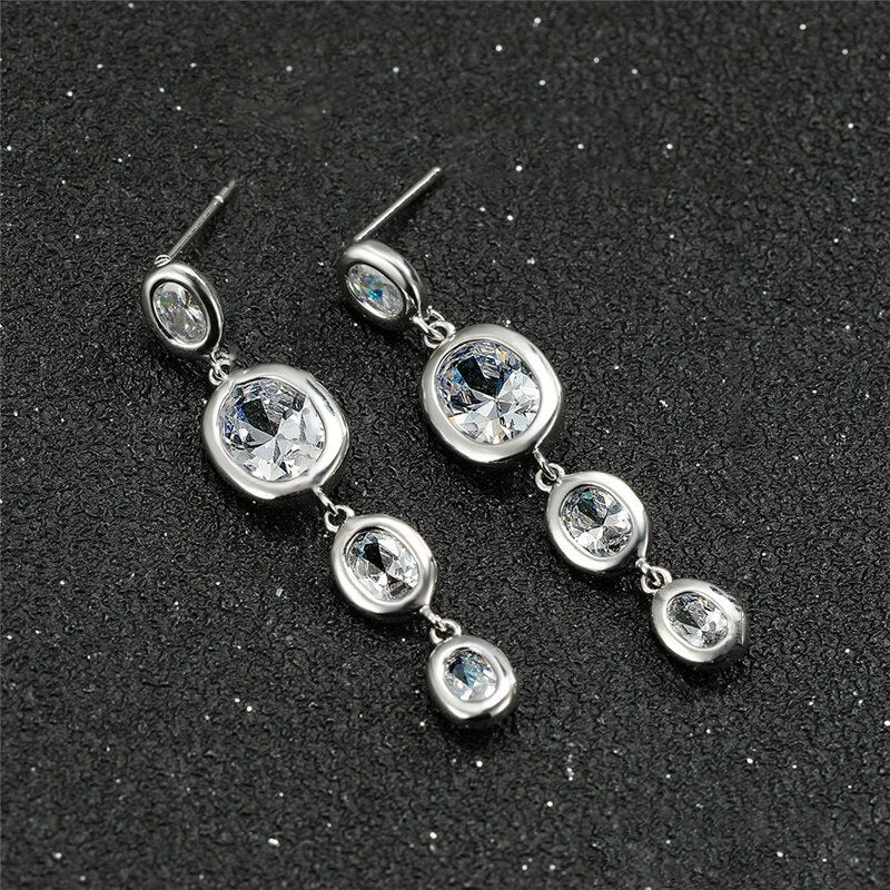 Zircon imitation tassel earrings Japanese and Korean small fresh Internet celebrity sweet earrings oval geometric female earrings jewelry