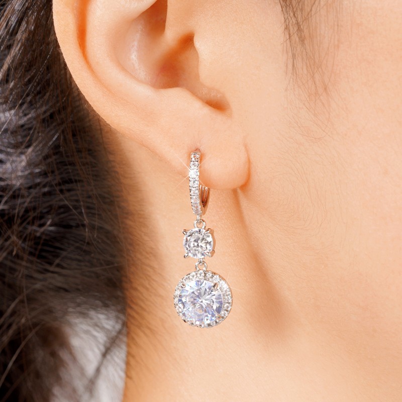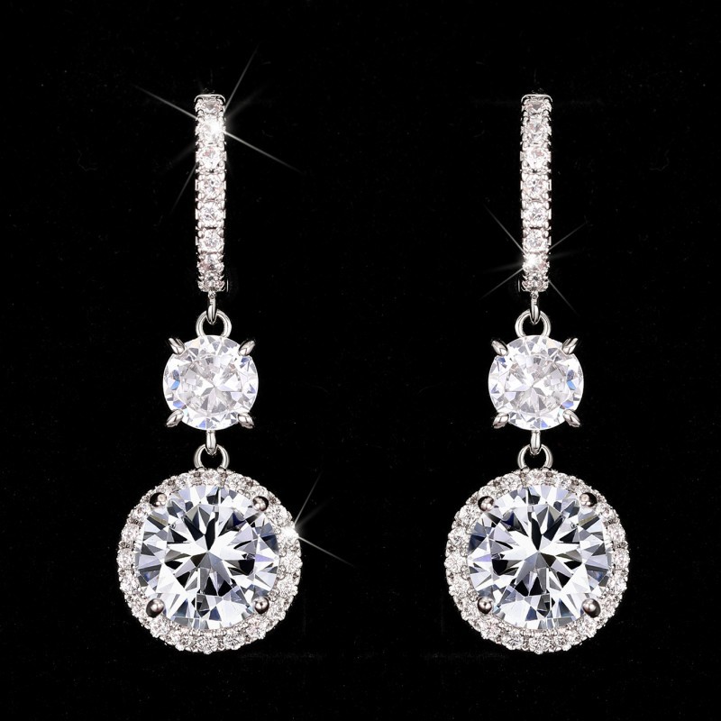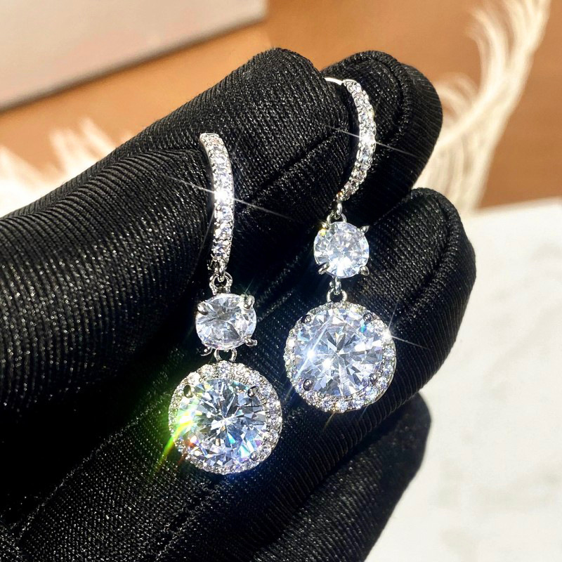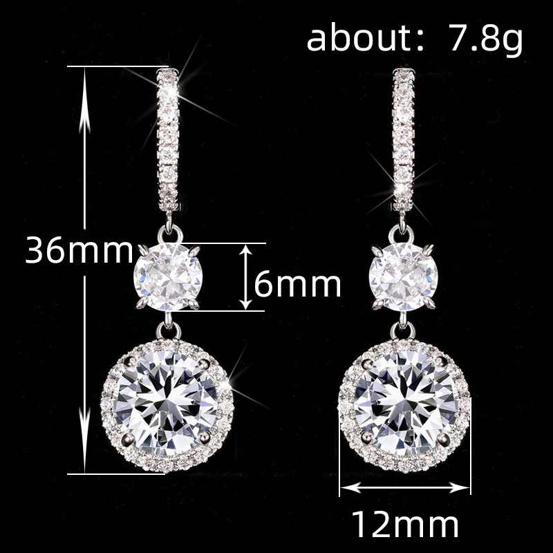 Zircon long earrings super shiny face-modifying luxurious temperament earrings new trendy round earrings
