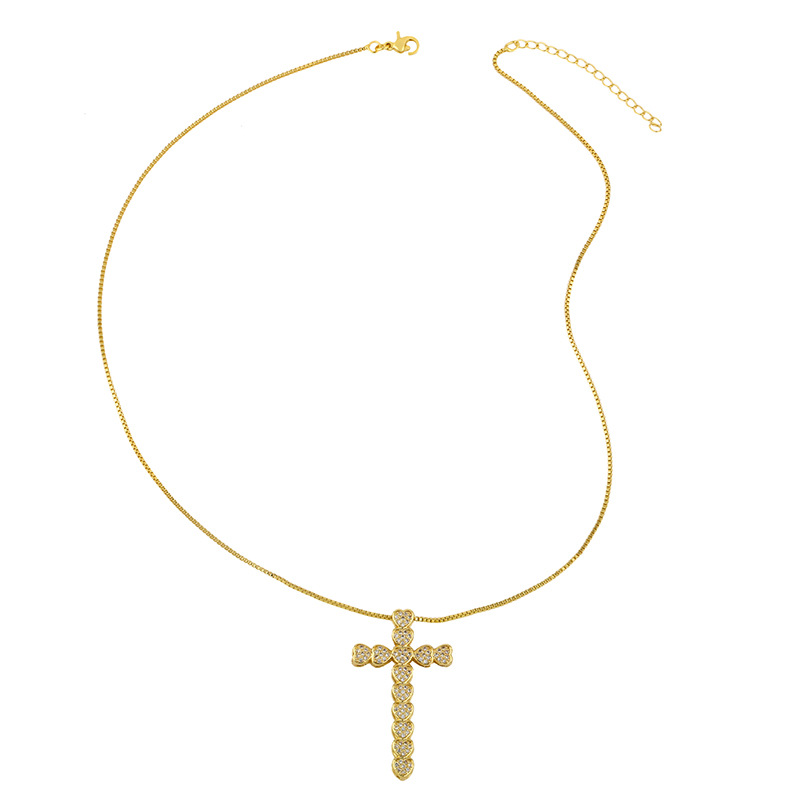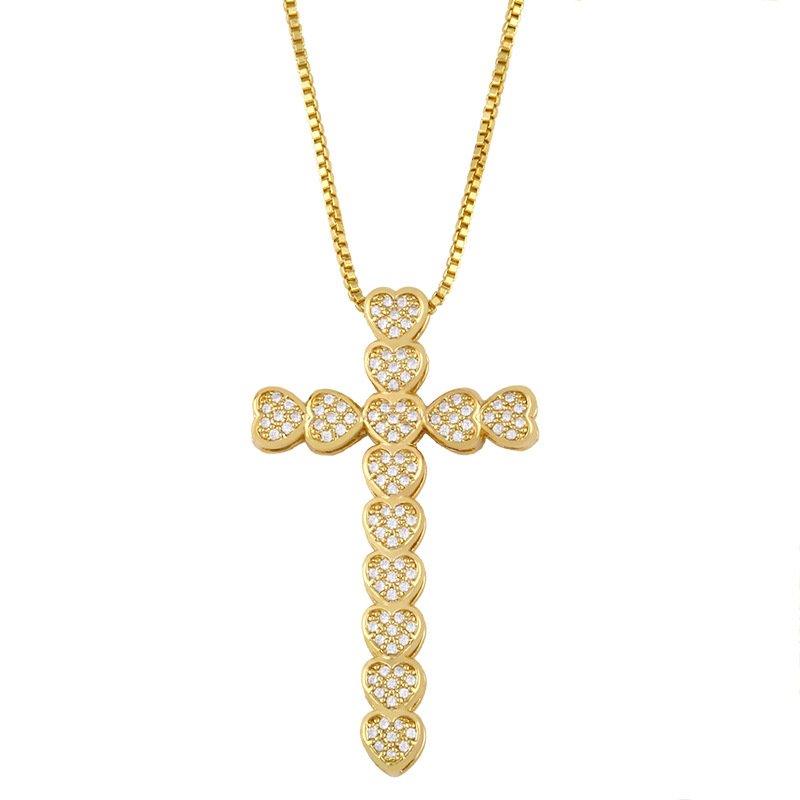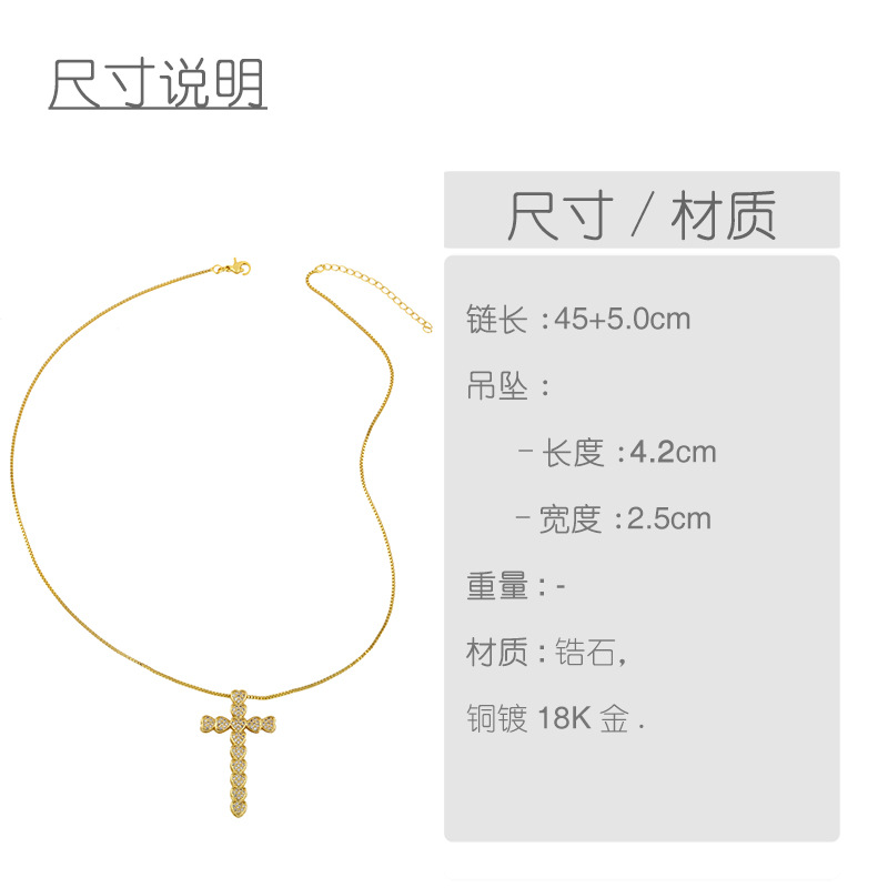Zircon necklace women's heart-shaped cross full diamond short clavicle chain simple temperament net celebrity pendant nks52